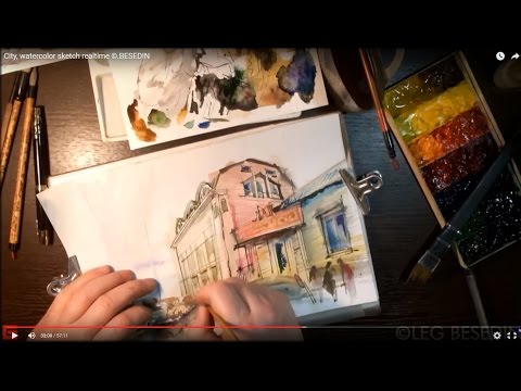 Городской мотив пером и акварелью. City, watercolor sketch realtime #Sta...